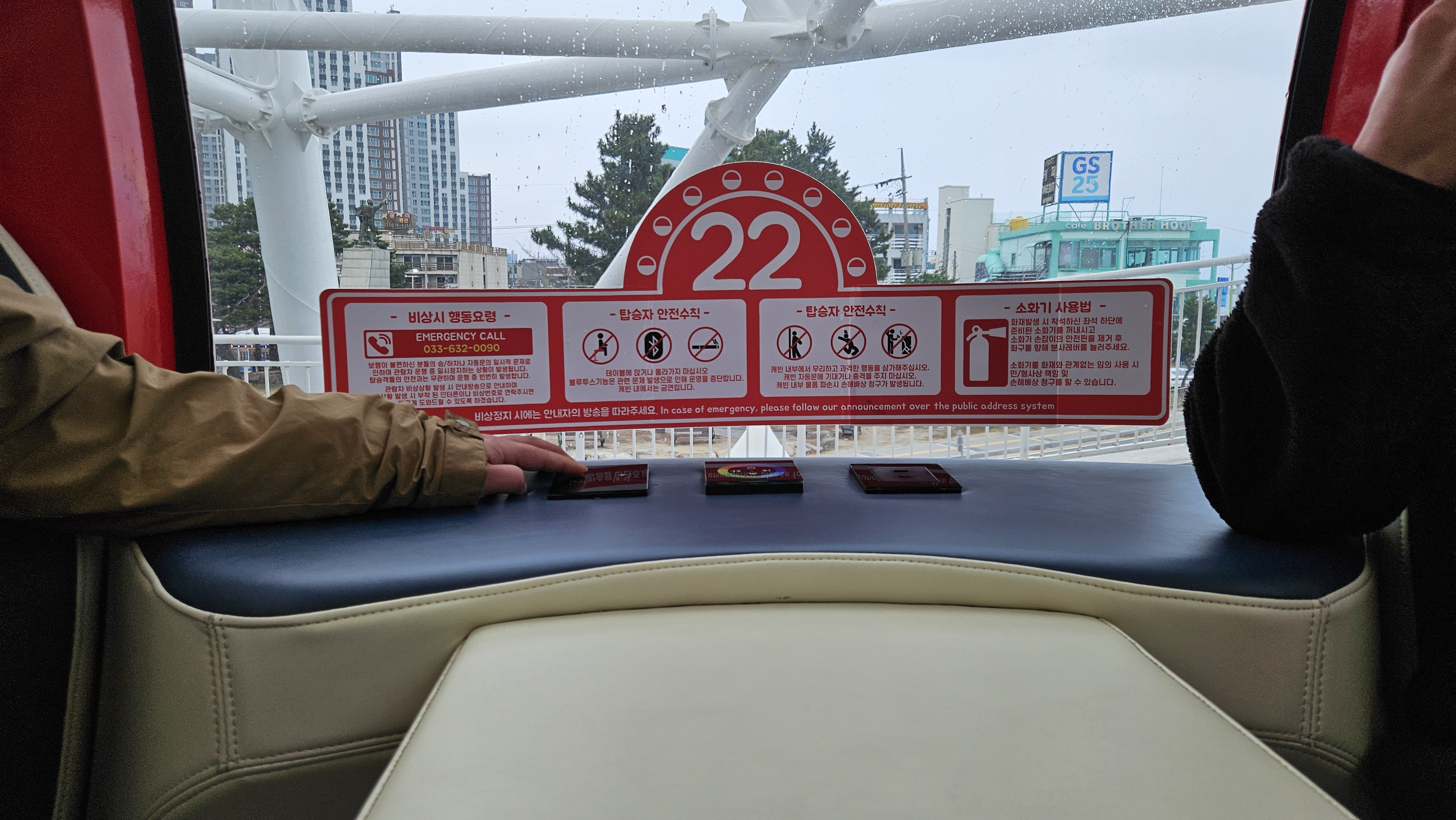 또한, 매표소 근처에는 화장실이 있지만, 대기 시간이 길어질 수 있기 때문에 탑승 전에 가는 것이 좋습니다. 대관람차 내부는 쾌적하게 유지되어 있으며, 에어컨과 공기청정기도 구비되어 있어 15분 동안 편안하게 경치를 감상할 수 있습니다. 대관람차의 운영시간은 오전 10시부터 밤 10시까지이니 일찍 가는 것을 추천합니다.