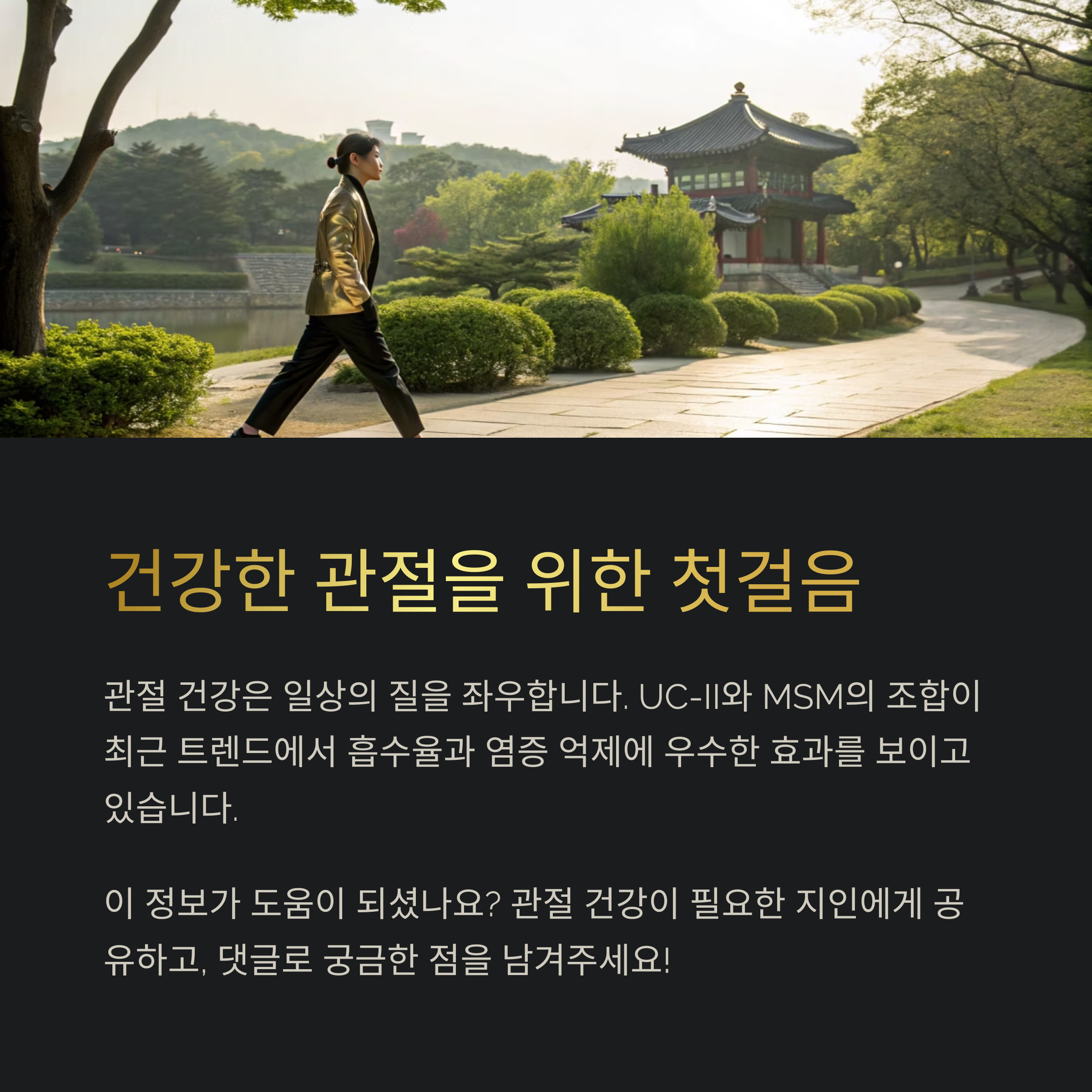 UC-II와 MSM의 조합이 최근 관절 건강 트렌드에서 흡수율, 염증 억제 모두 우수하므로