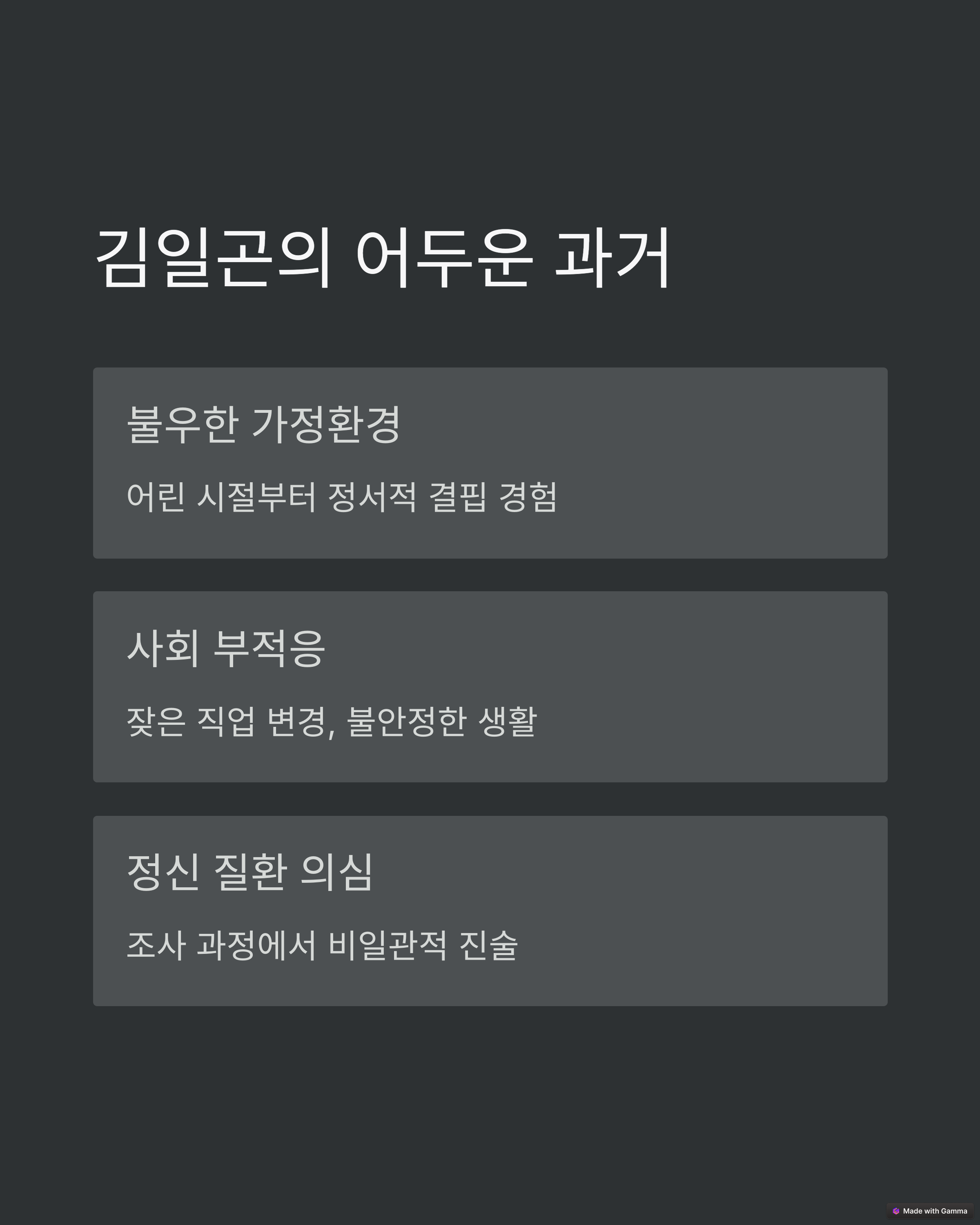 그의 살생부에는 놀랍게도 사회적 지위와 관계없이 다양한 인물들이 적혀 있었습니다. 판사, 검찰, 경찰관 같은 공무원뿐 아니라 일반 시민도 포함되어 있었는데, 이는 김일곤의 분노가 단지 한 사람에게 국한된 것이 아님을 의미합니다. 무차별적인 살해 의도를 갖고 있던 그는 어떤 규칙도, 기준도 없이 범행 대상을 선택했고, 이러한 특성은 일반적인 범죄자와는 다른 비이성적 성향을 드러냅니다. 특히 본인의 심리 상태에 대한 통제력이 결여되어 있었으며, 사회로부터의 단절과 오랜 기간 누적된 억울함이 복수로 표출된 형태였습니다.