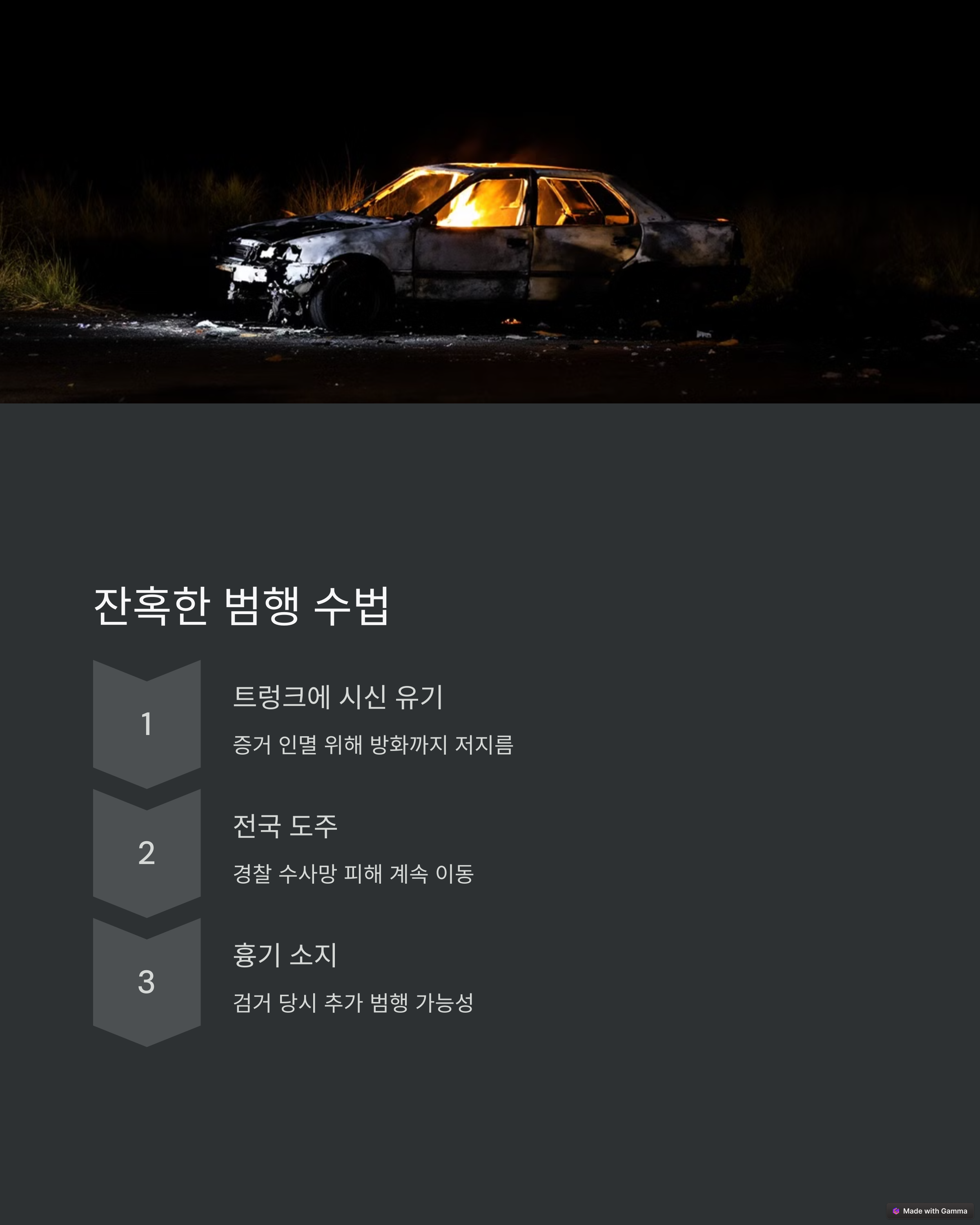 | 차량 트렁크에서 시신 유기 후 방화 | 판사, 일반인 포함 총 28명 기록 | 50만 원 벌금에서 시작된 무차별 분노 |
