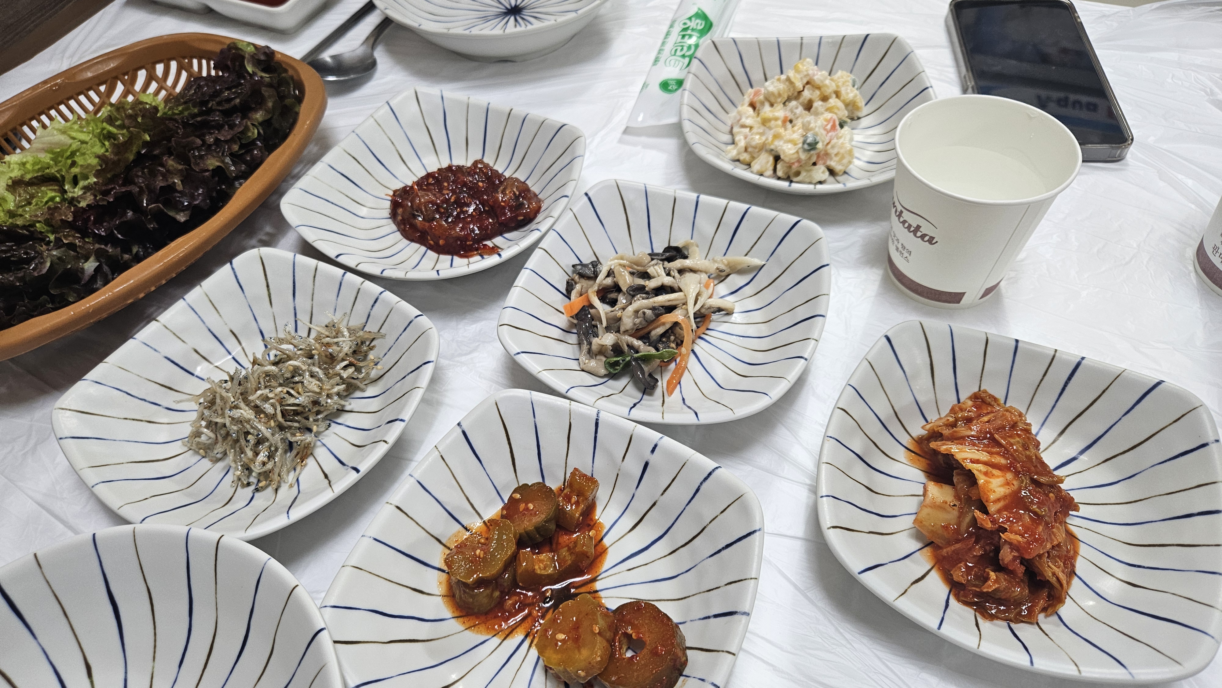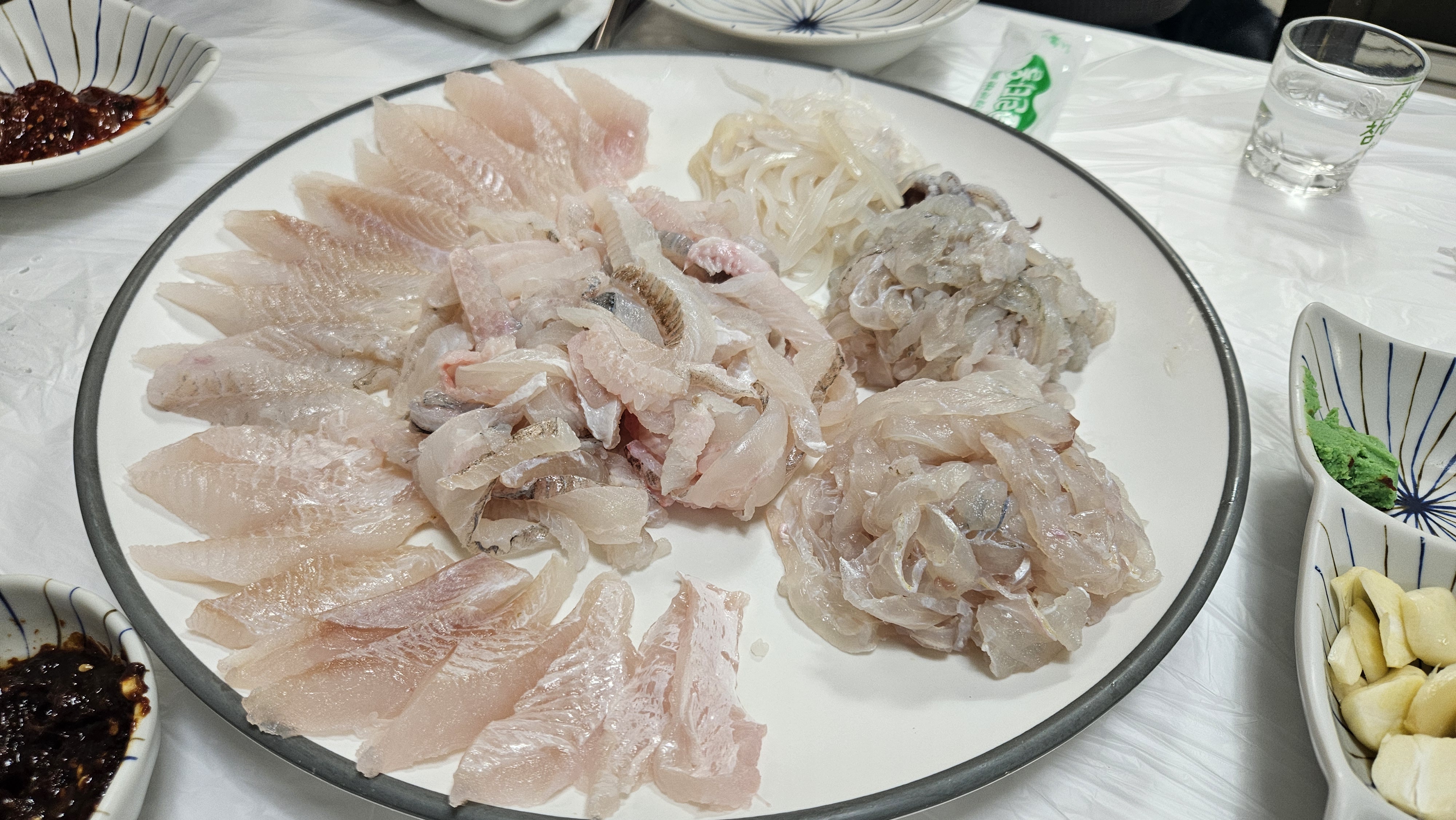 기본 반찬과 함께 회가 나오는데, 처음에는 신선한 회를 먹으며 소주 한 잔과 함께 즐겼습니다.