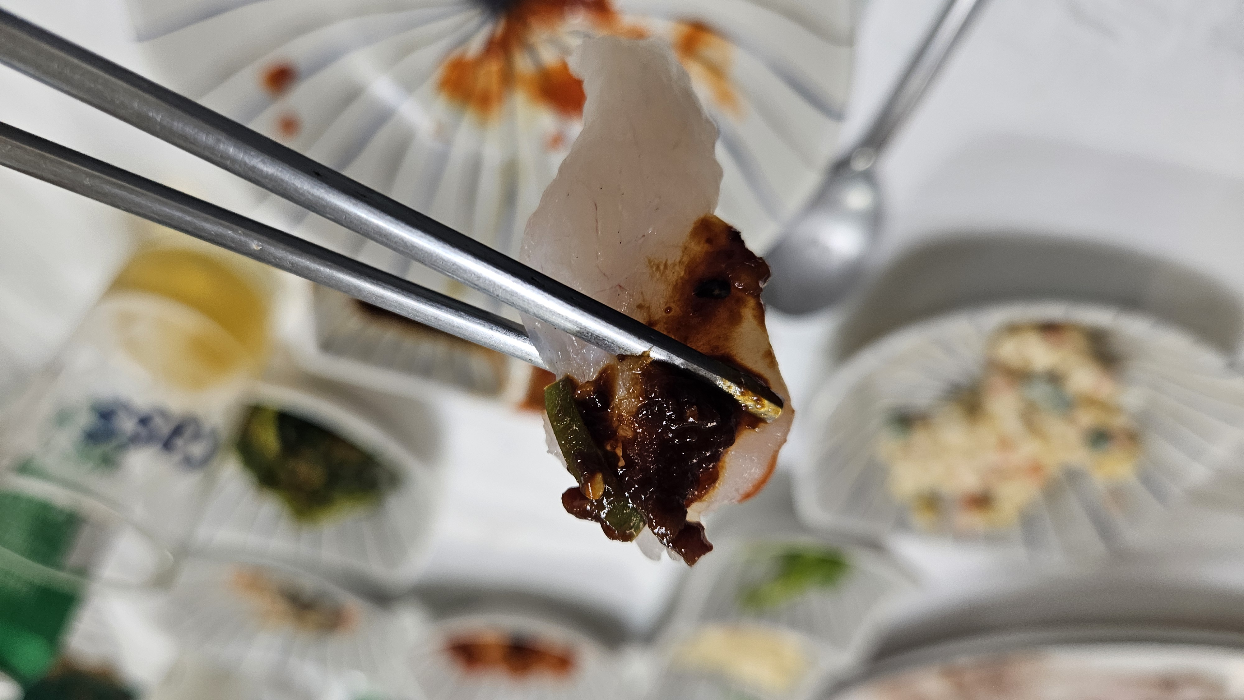 구매 후 초장집으로 이동하면 신선한 회를 쉽게 손질해 주는데, 이 과정에서 추가 비용이 발생하니 미리 참고하시는 것이 좋습니다. 회를 써는 모습을 구경하는 것도 재미있고, 기다리는 동안 다양한 해산물에 대한 정보도 들을 수 있어 유익한 시간을 보낼 수 있었습니다. 그렇게 준비된 신선한 해산물은 기대 이상으로 맛있었습니다. 특히, 광어는 두툼하게 썰어져 씹는 맛이 뛰어났고, 해삼과 멍게 조합도 흥미로웠습니다.