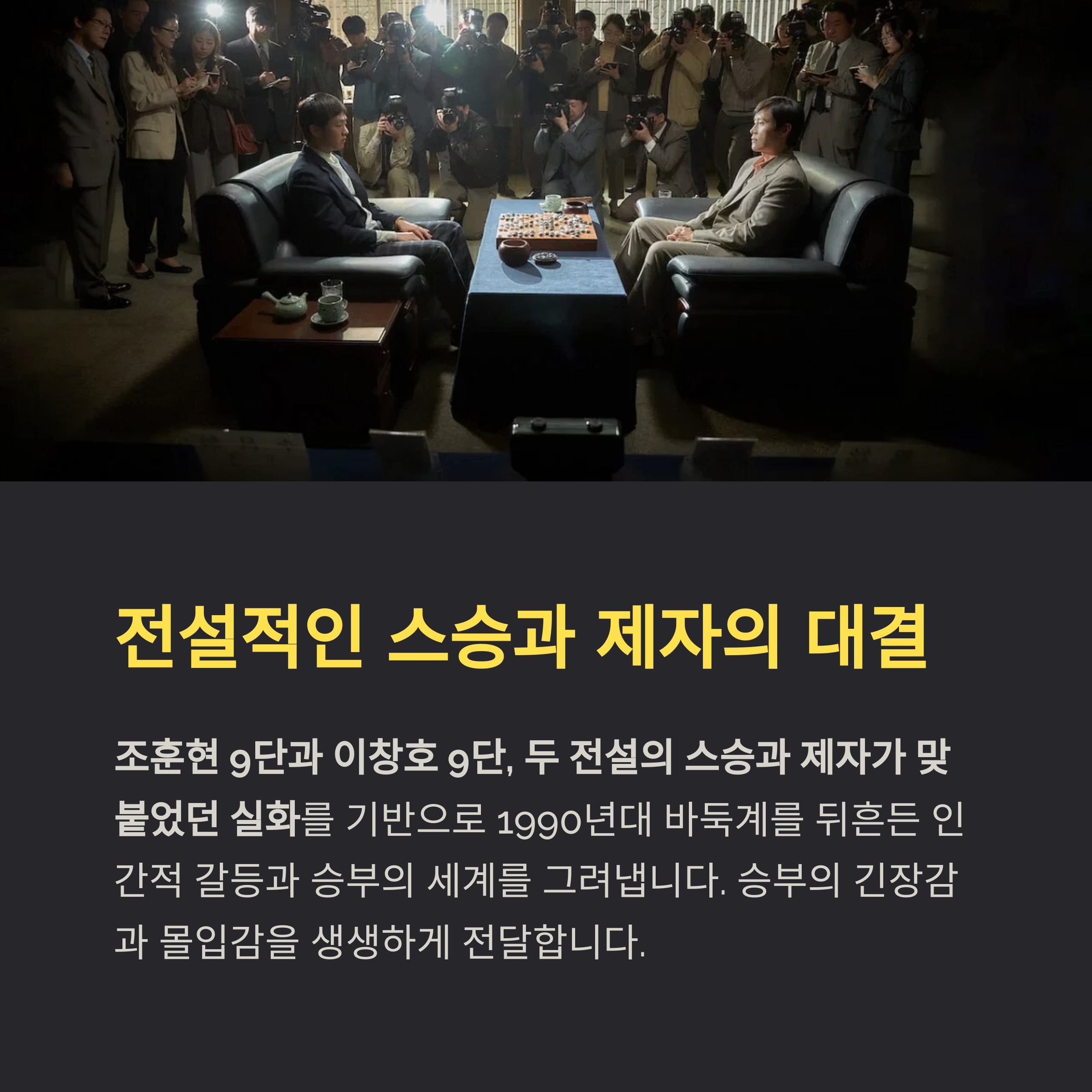 조훈현 9단과 이창호 9단, 두 전설의 스승과 제자가 맞붙었던 실화를 기반으로 하여