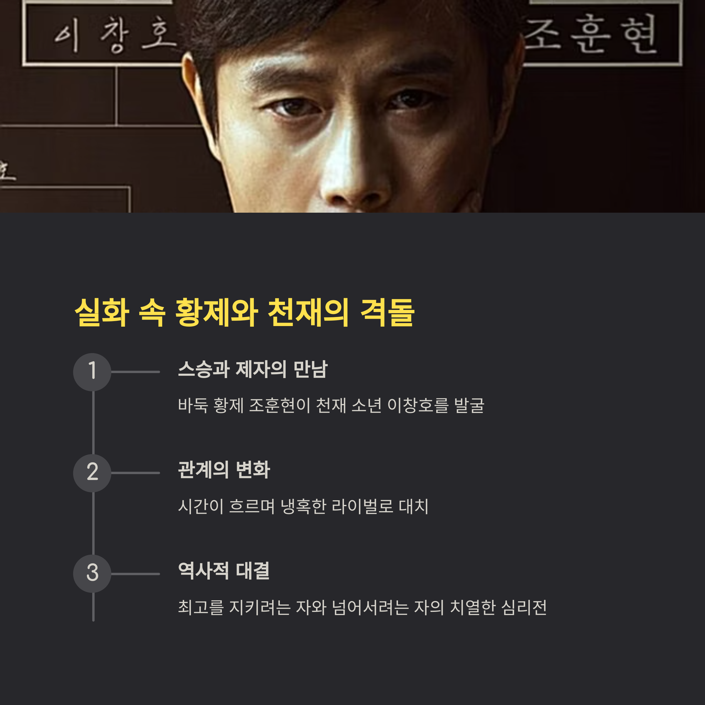 조훈현 9단과 이창호 9단, 두 전설의 스승과 제자가 맞붙었던 실화를 기반으로 하여