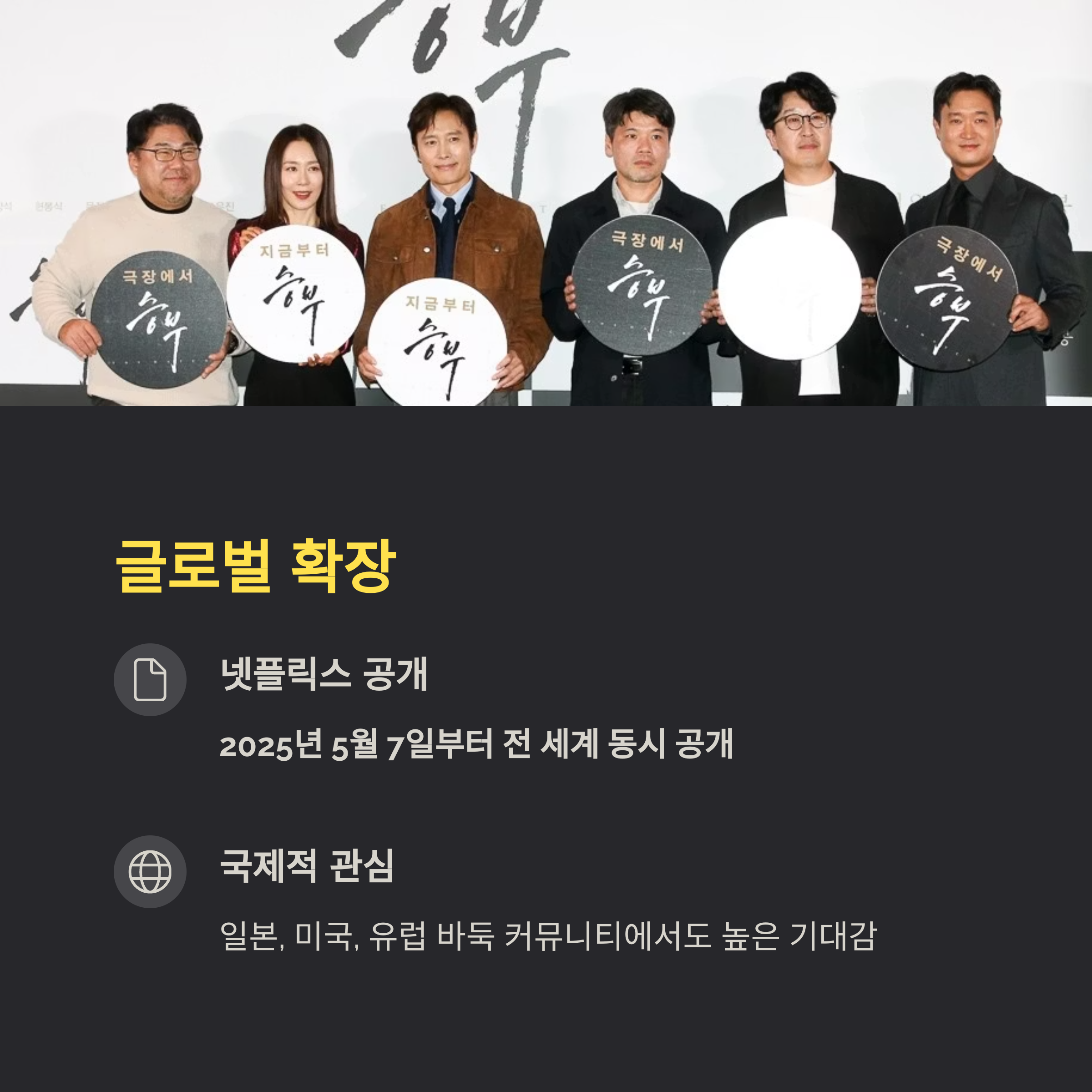 영화 '승부'는 극장 개봉 이후 2025년 5월 7일부터 넷플릭스를 통해 전 세계에 동시 공개됩니다.