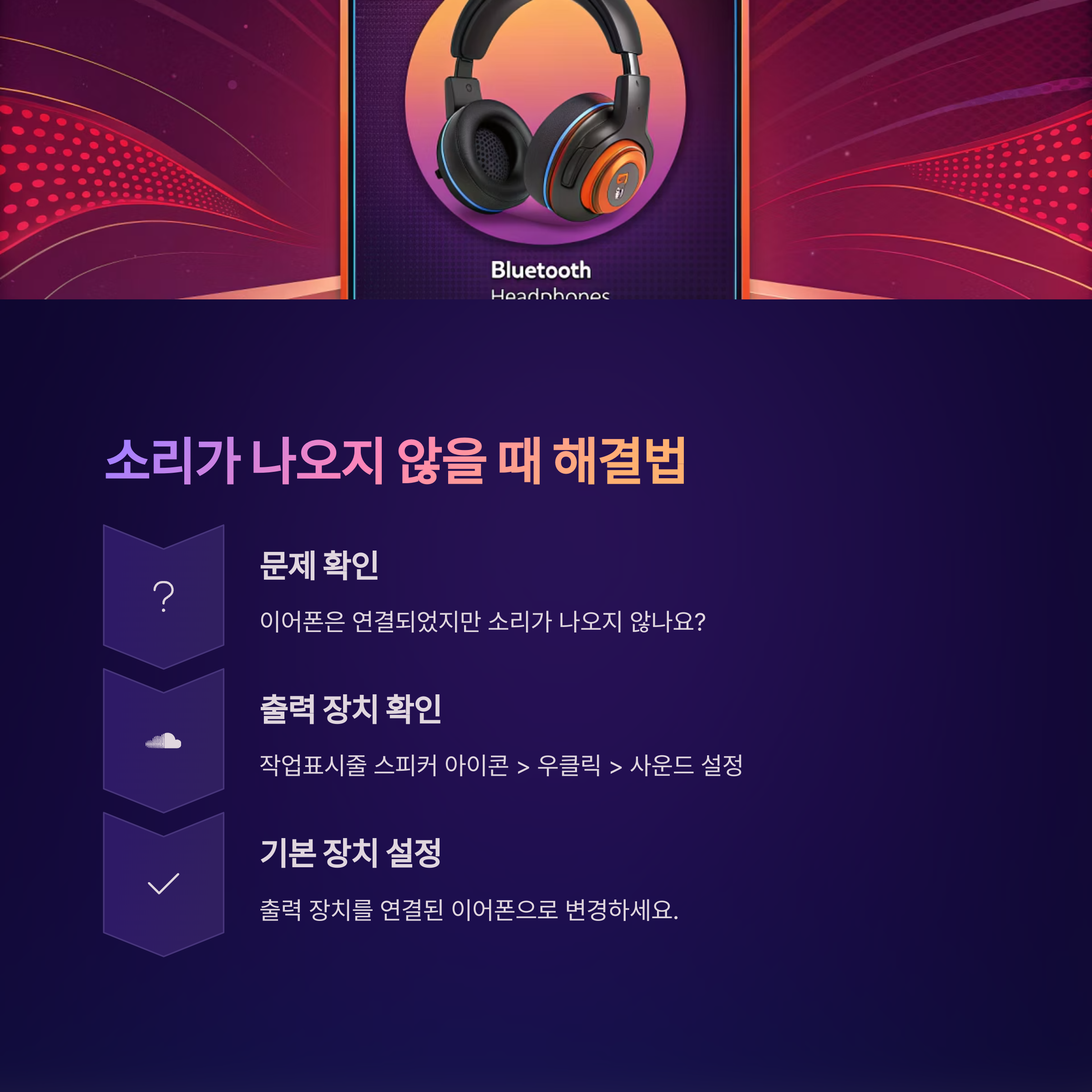 "출력 장치가 이어폰으로 설정되어 있지 않아서일 수 있어요!"