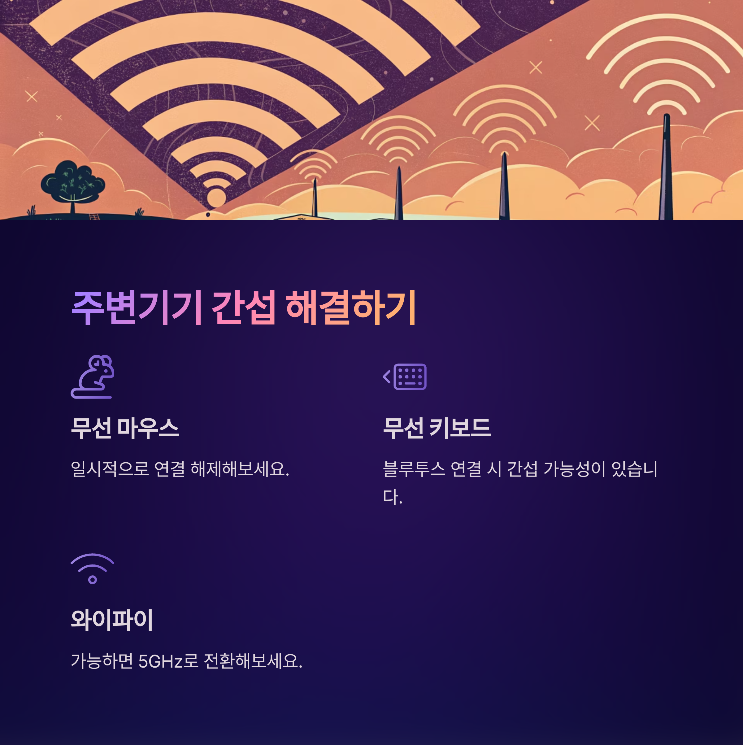 무선 마우스, 키보드, 와이파이 신호가