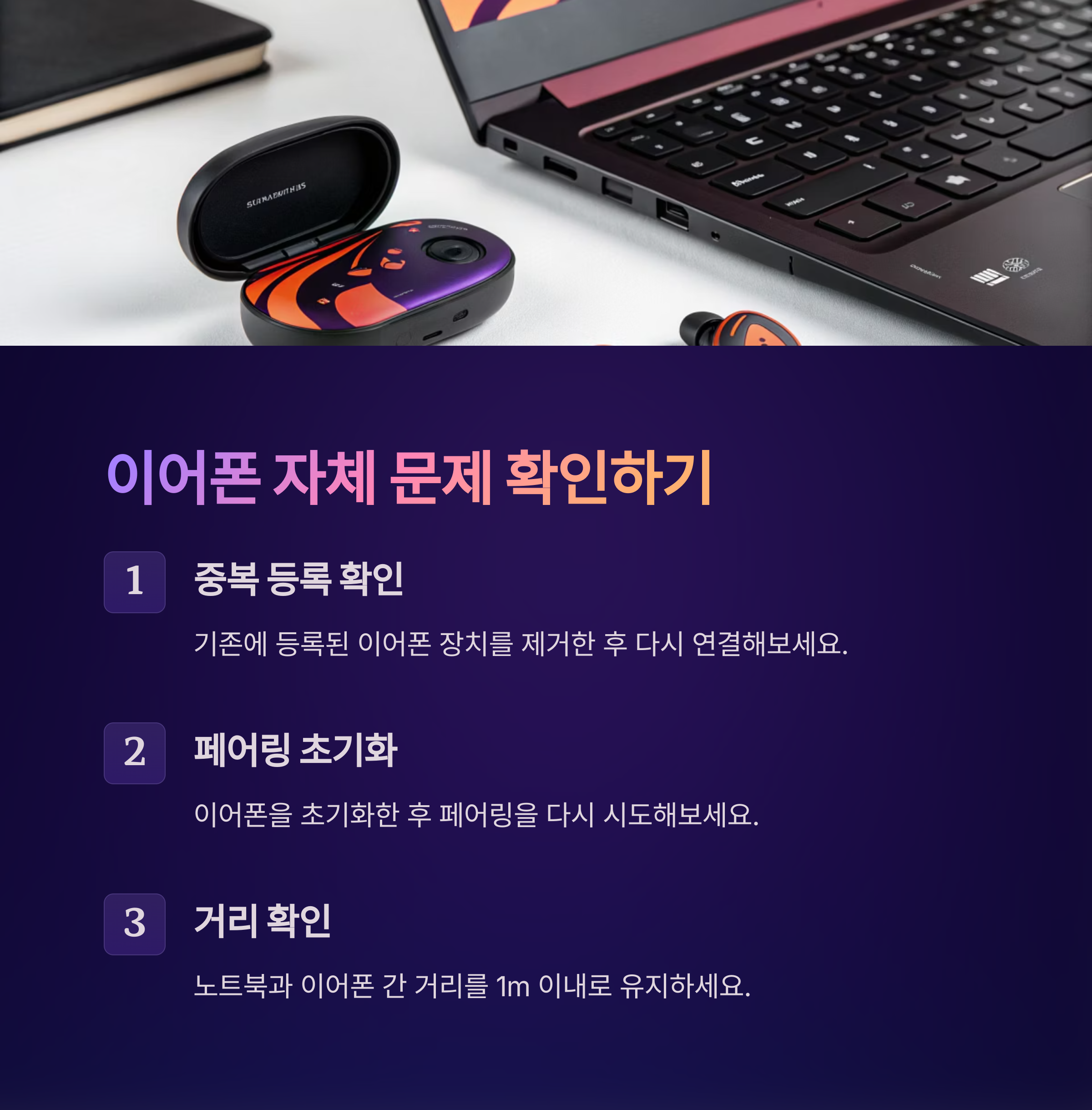 | 거리 문제 | 노트북과 이어폰 간 1m 이내 유지 |