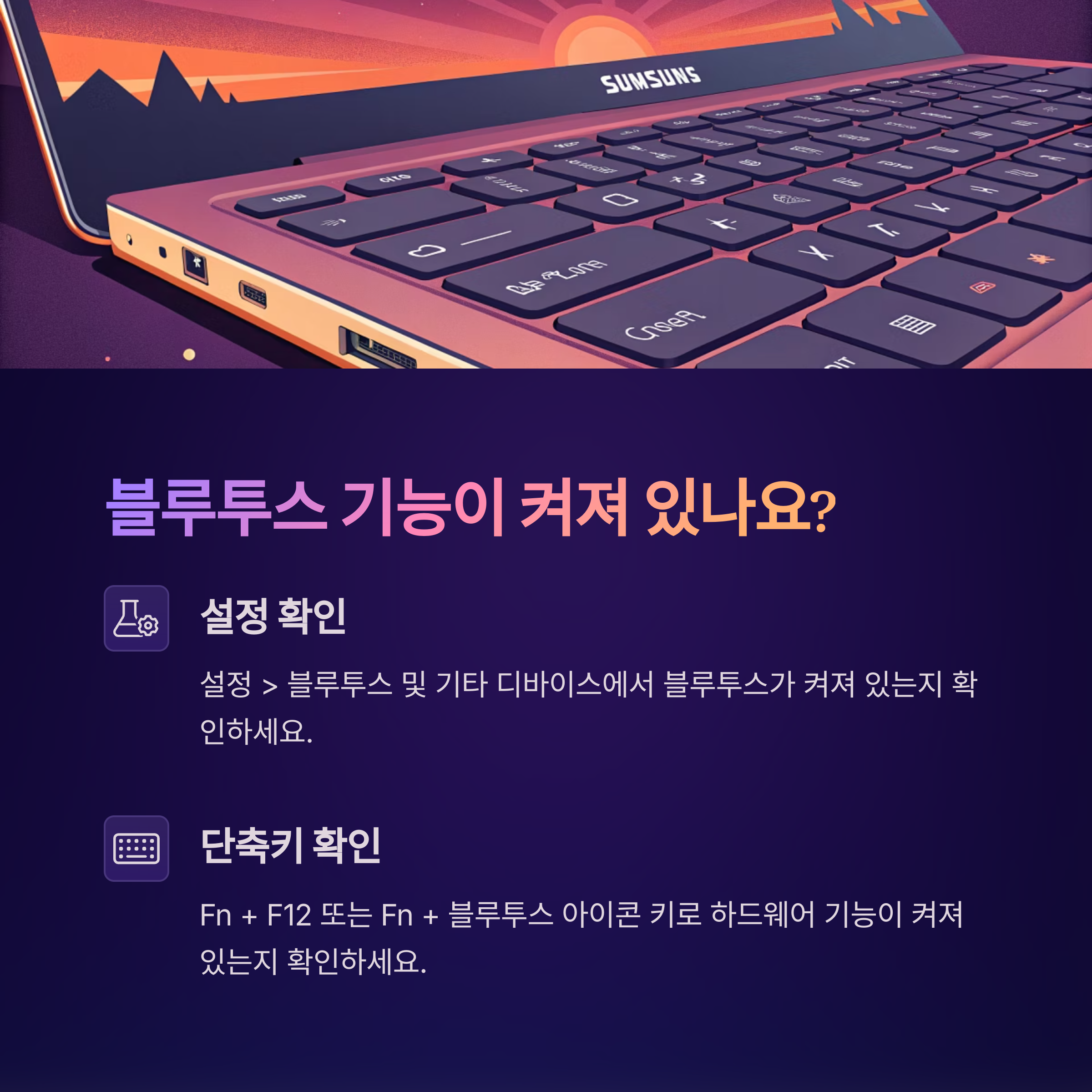 "Fn + F12" 또는 "Fn + 블루투스 아이콘 키" 조합으로 하드웨어 기능을
