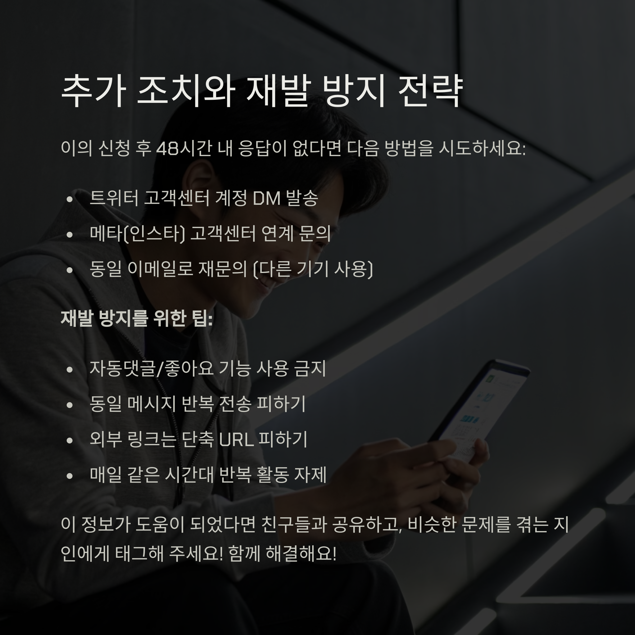 트위터 고객센터 계정 DM | Threads 운영팀 공식 계정 존재 시 활용 |