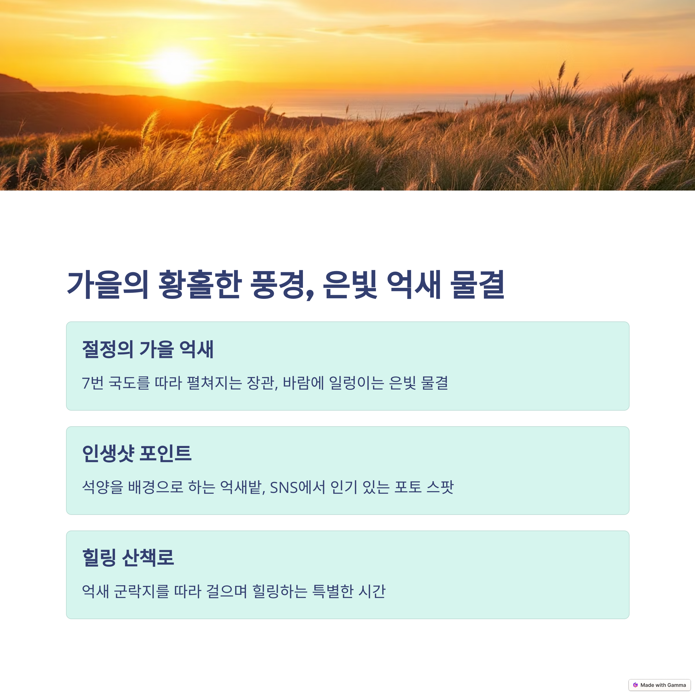 트레킹을 즐기는 이들에게는 더욱 특별한 경험이 될 것입니다. 바다의 소리와 함께 자연을 만끽하며 여유로운 시간을 보내는 것은 여행의 큰 매력이 아닐 수 없습니다.