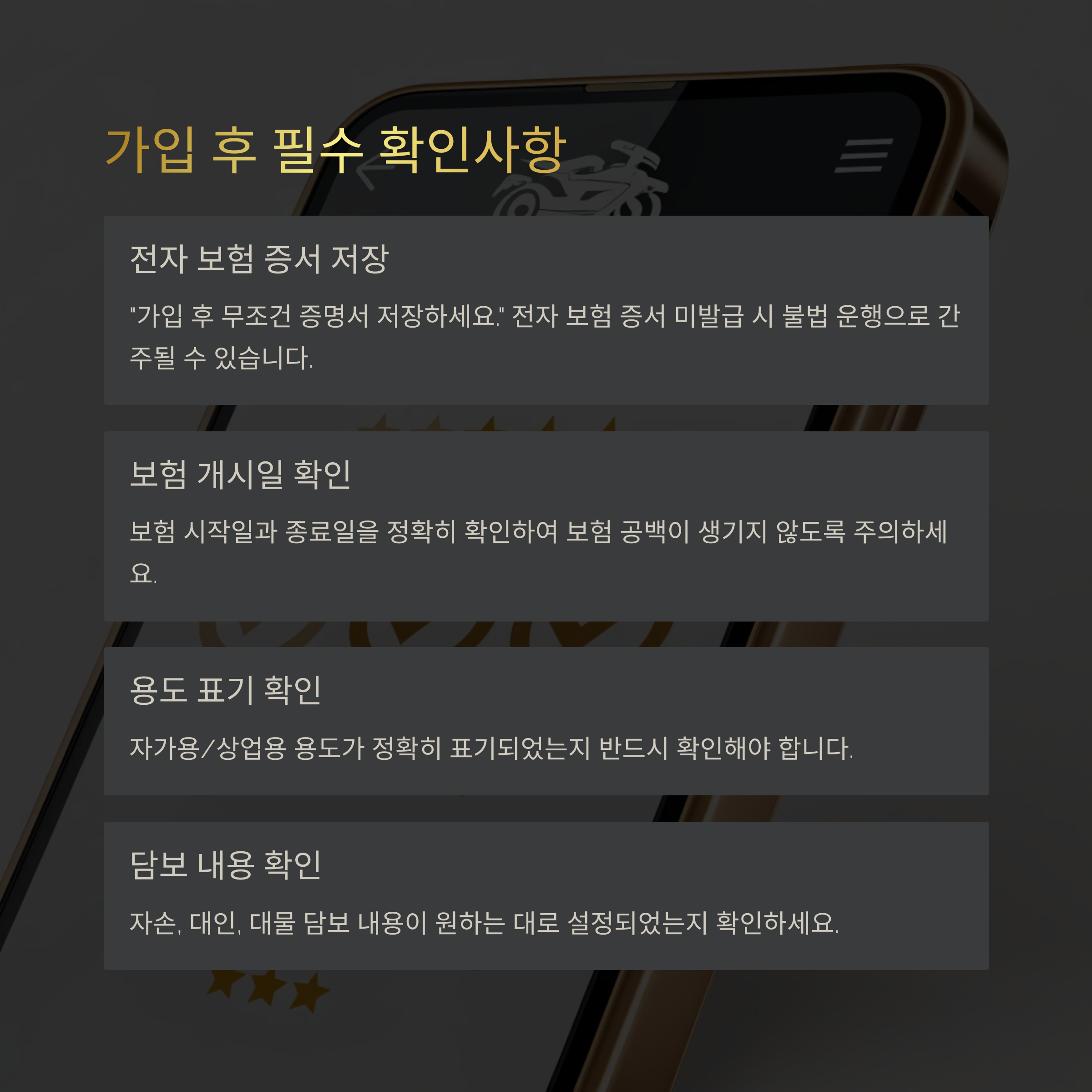 이륜차 다이렉트 보험 가입 후 필수 확인