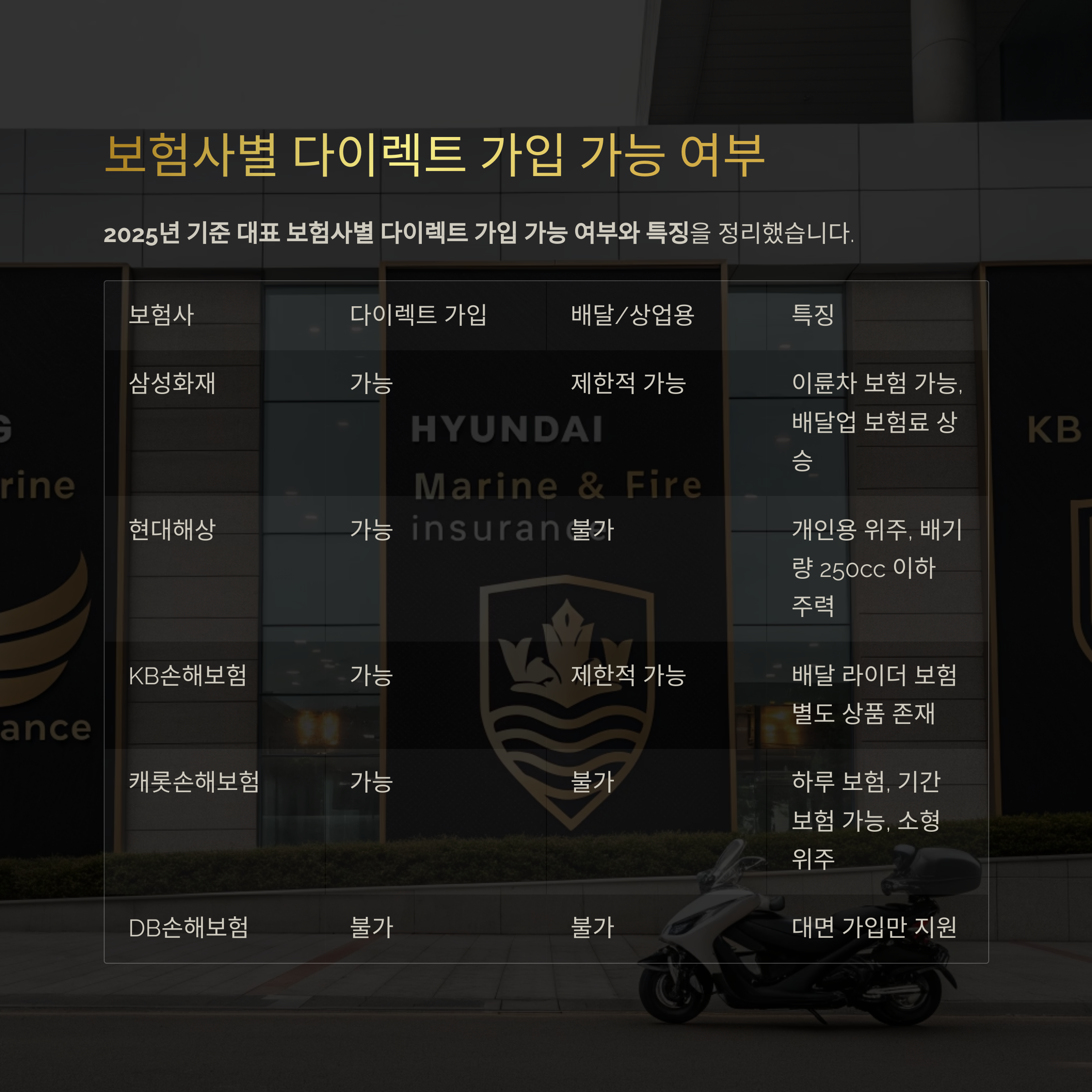 이륜차 다이렉트 보험, 보험사별 가입 가능 여부 비교