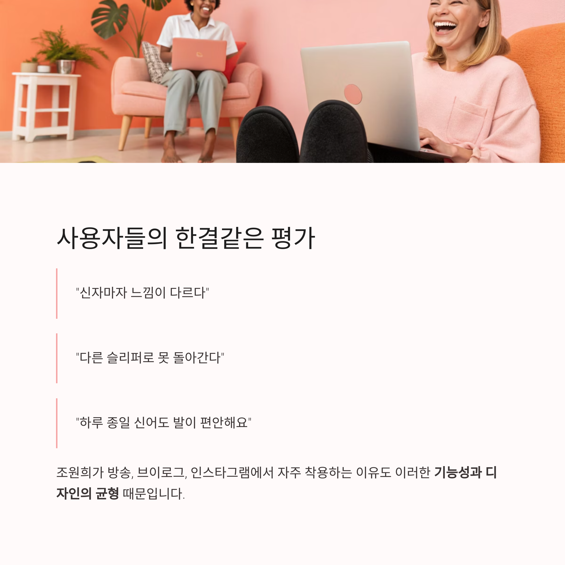 핵심: 하루 종일 신어도 처음 같은 편안함을 유지할 수 있는 게 큰 장점입니다.