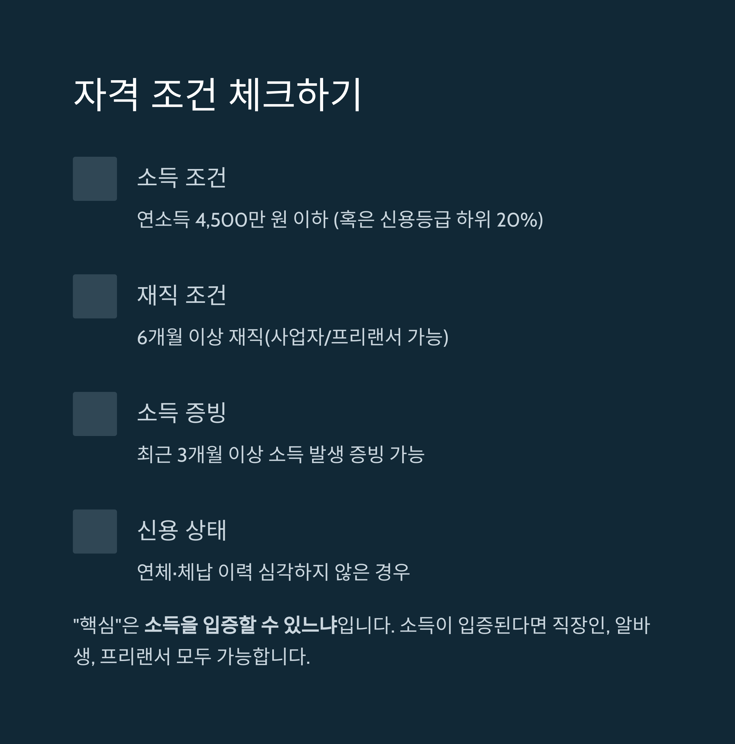 단, 무조건 승인이 되는 건 아니므로 자격 조건을 꼼꼼히 체크해야 합니다.
