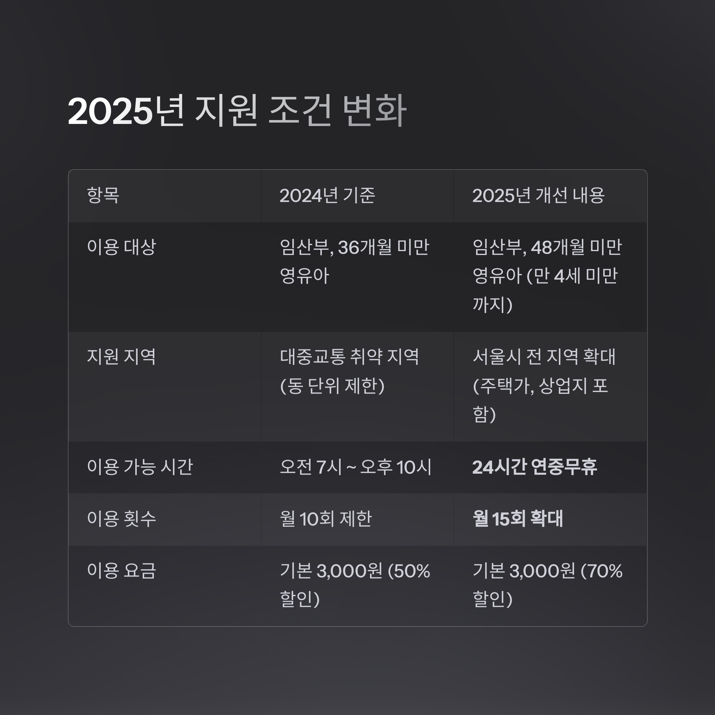 서울시가 운영하는 엄마아빠택시가 2025년부터 전면 개선됩니다.