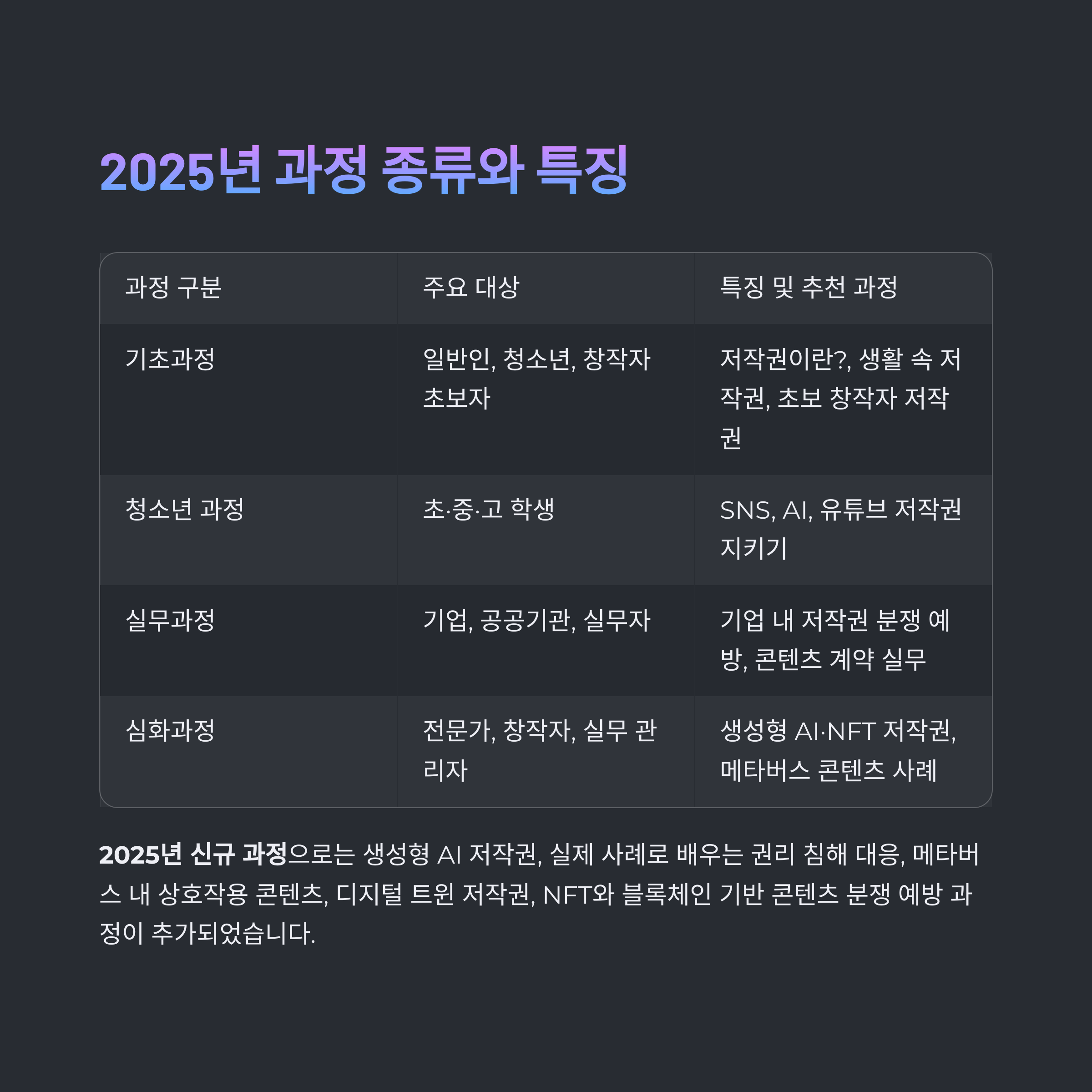 2025년 기준, 전 국민 누구나 무료로 저작권 기초, 실무, 심화 과정까지 수강할 수 있으며