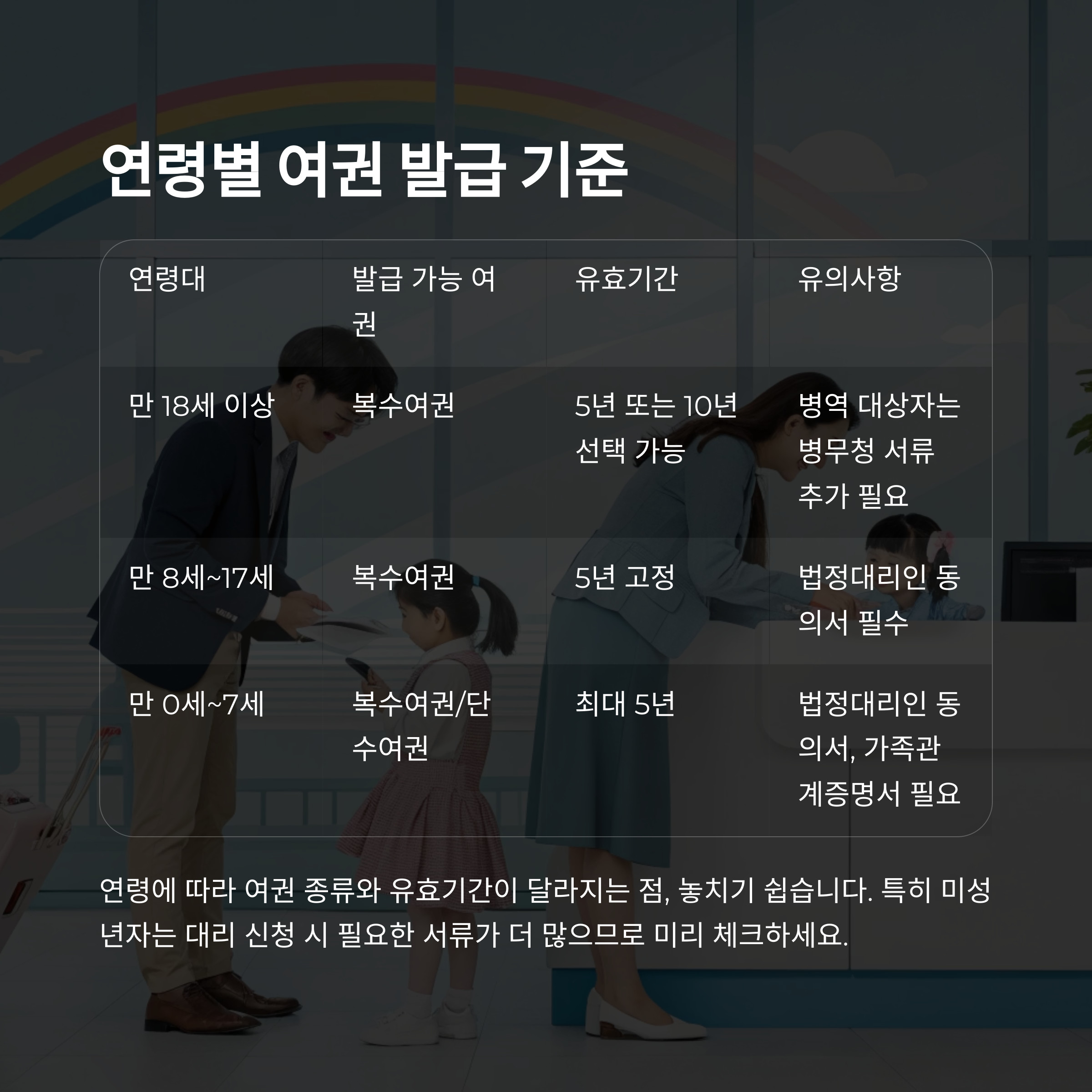 연령에 따라 여권 종류와 유효기간이 달라지는 점, 놓치기 쉽습니다.