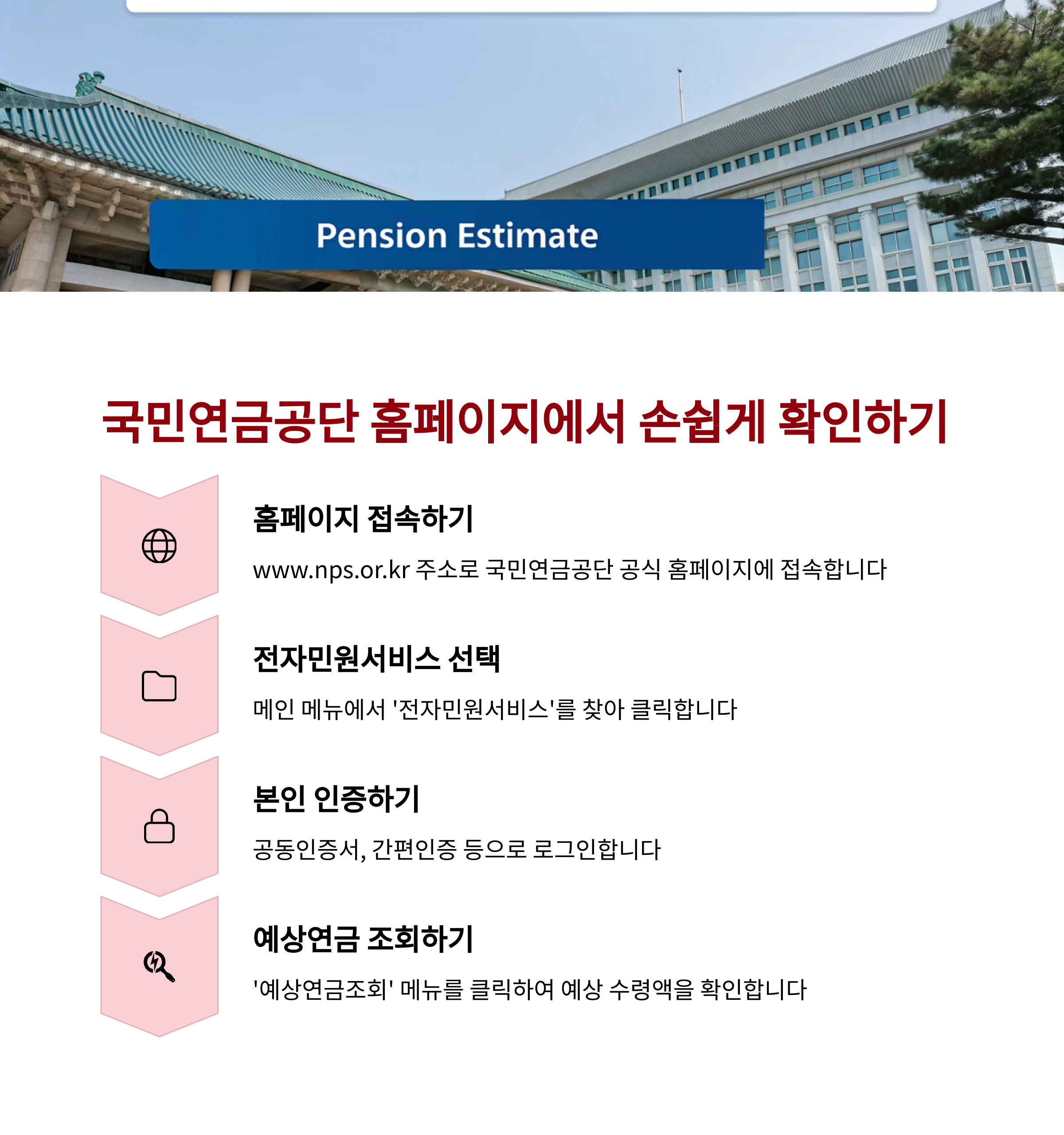 | 수령액 계산 방식 | 가입 기간, 평균 소득 입력 시 자동 계산 |
