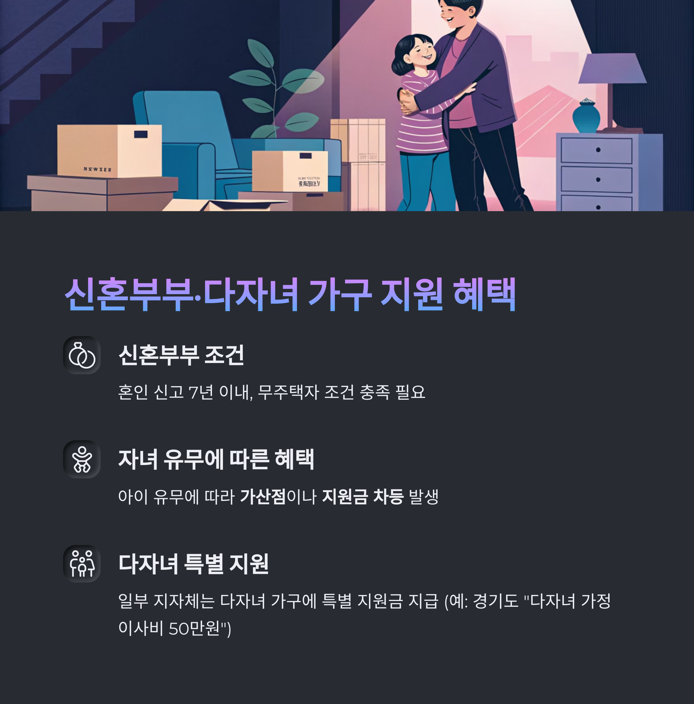 아이 유무에 따라 가산점이나 지원금 차등이 발생합니다.