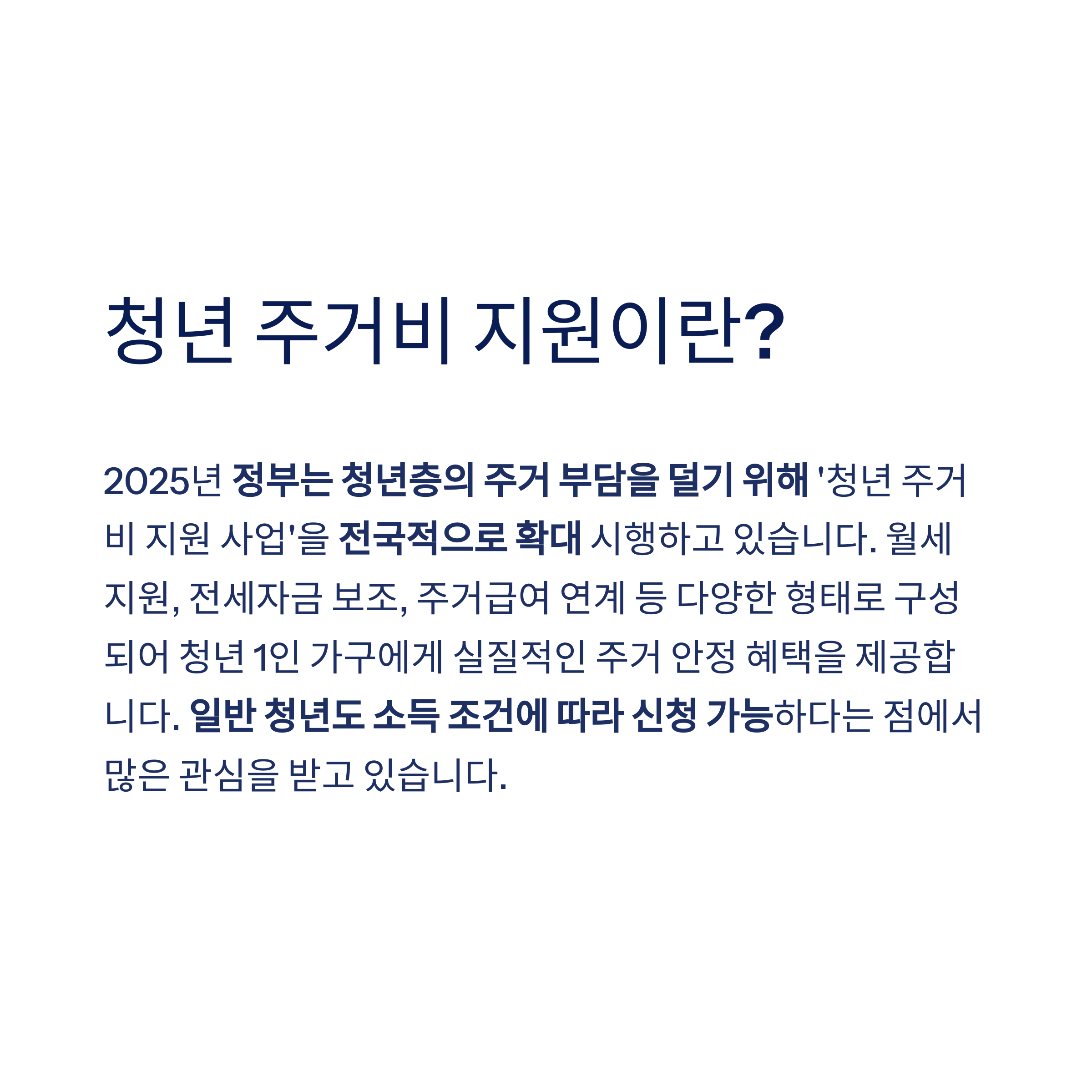 "2025년 청년 주거비 지원으로 월세 20만 원 지원 확정.