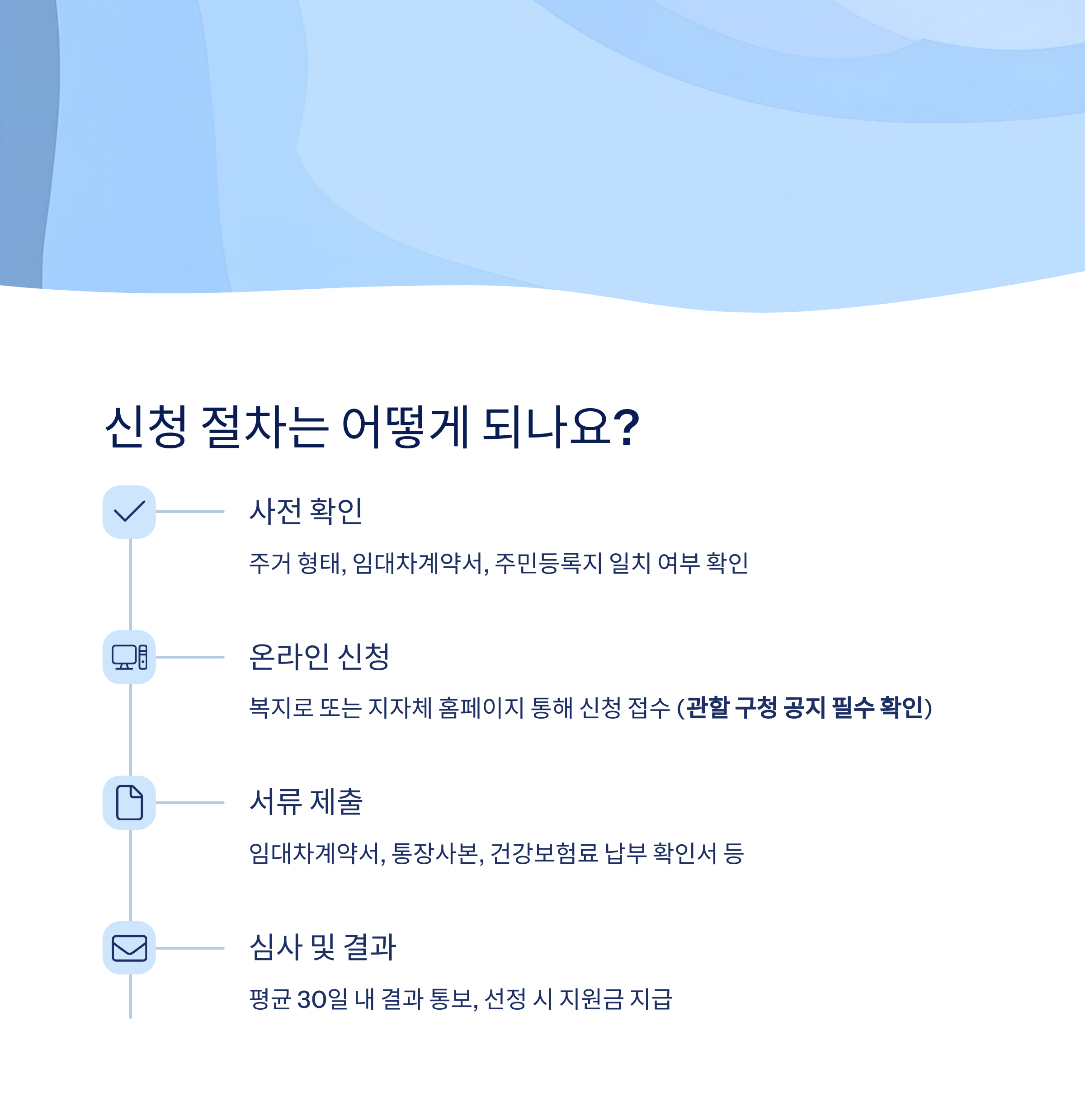 - 복지로 또는 지자체 홈페이지 통해 신청 접수